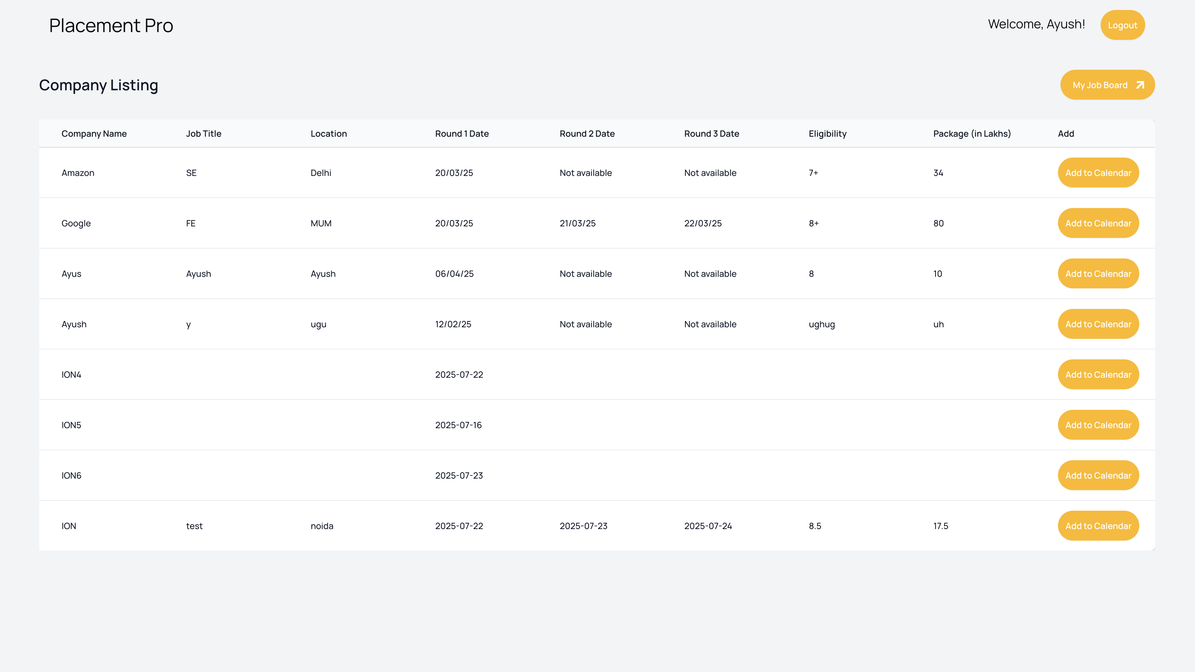 A placement management system built with Next.js and TypeScript, designed for students to easily monitor company recruitment details and seamlessly add important placement exam dates to their personal calendars. The platform emphasizes secure authentication and smooth user experience.