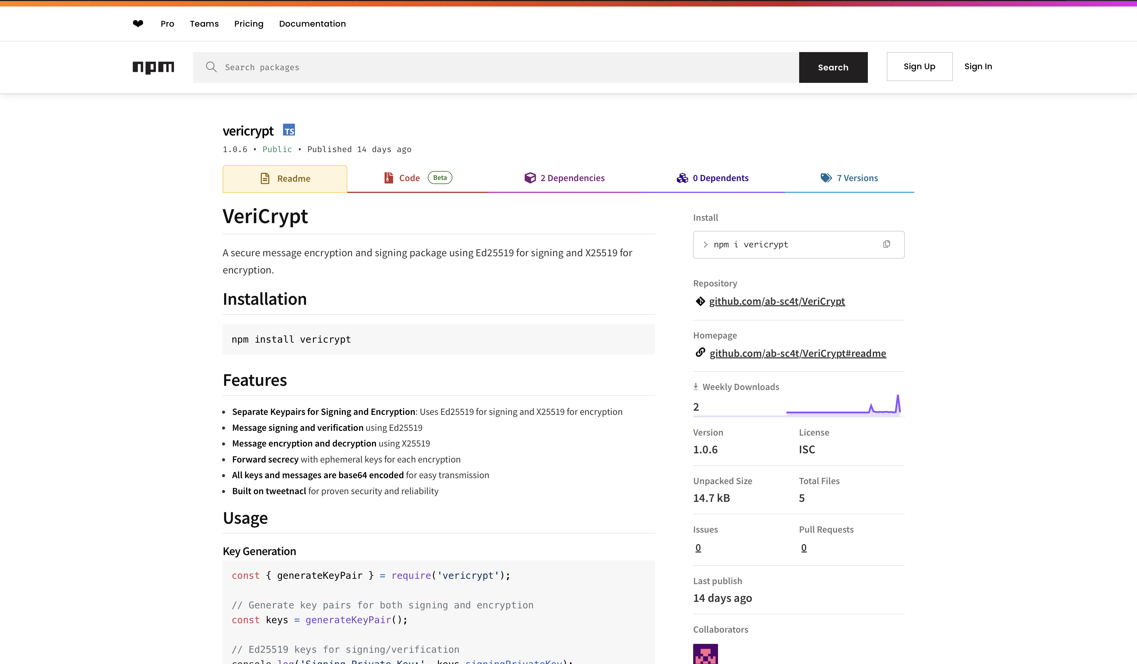 Developed an npm package that streamlines cryptographic operations by allowing developers to use a single Ed25519 key pair for both digital signing/verification and encryption/decryption (via X25519). The package is designed for simplicity, security, and efficiency in secure messaging workflows.